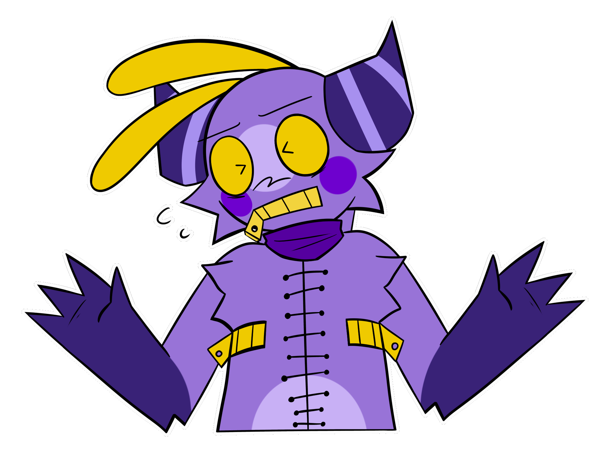 hello !! i'm a lot of things, but you may refer to me as deimos. i'm the weird puppet robot ghost thing that you might find playing games on your computer. naturally, i have a long list of possible species i can fall under.mexican american and trying to learn spanish (sorry to my family for always saying no to learning how to speak it when i was younger, it sounded hard).LVL 20 (JAN 11TH)pronouns: they/it/he (order of pref.)i have a shit ton of sonas that i like to use most of the time, some probably aren't even me ! you can figure out what that means during your own time. a few of them are a mix of sona and oc if that makes any sense.filled with autism and other problems...so please let me know if i say anything that makes you feel uncomfortable. sorry if i come off as dry, i don't really feel like typing in all caps to get my emotions across everytime. just know that i'm truly laughing at your hilarious jokes on the other side of your screen.i don't always post online, mostly due to art blocks and the occasional "this is too cringe". for the most part, you might get doodles !